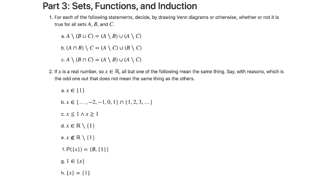 Solved Part 3 Sets Functions And Induction 1 For Each Chegg Com